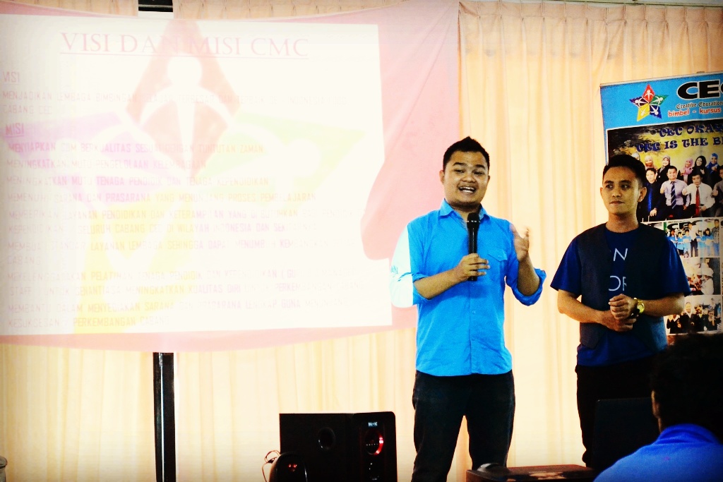 Saat ini lembaga bimbel Creative Education Course – CEC. Siap hadir membantu Negara Indonesia guna membentuk karakter generasi muda Indonesia yang Rajin, Cerdas dan Unggul, dalam Intelligence Quotient (IQ), Emotional Quotient (EQ) dan Spiritual Quotient (SQ). Penerapan metode pembelajaran yang mengkaitkan 3 aspek tersebut menjadi daya saing lembaga Bimbel CEC dan membuat lembaga bimbel CEC dapat Unggul terdepan dan Terpercaya Pilihan no 1 di masyarakat Indonesia.